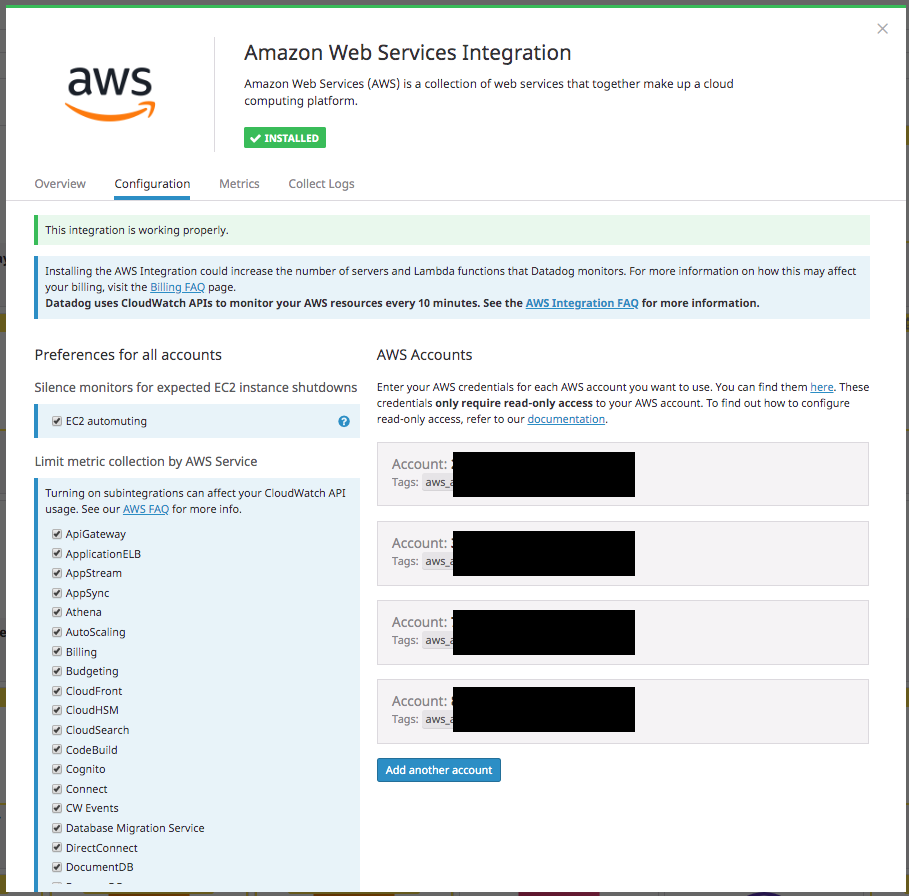 これで、AWS Integrationを複数のアカウントに展開することができました!