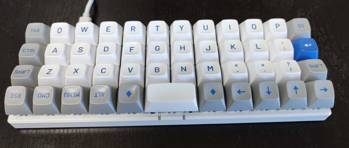 【サイズ】は40%キーボードです。 エンジニアは60%か75%キーボードを利用している方が多いのかな?と思っていますが、自分も以前長らくHHKBを利用していたので、60%キーボードに慣れていました。 サイズが小さくなると持ち運びが便利だと実感していたので、「それであれば更に小さくしたら更に利便性が上があがるでは?」と思い40%にチャレンジしてみました。