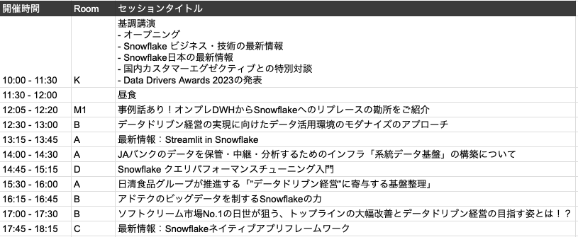 Snowflakeの最新情報や特別対談、Data Drivers Awardsの発表などがこの基調講演で行われました。